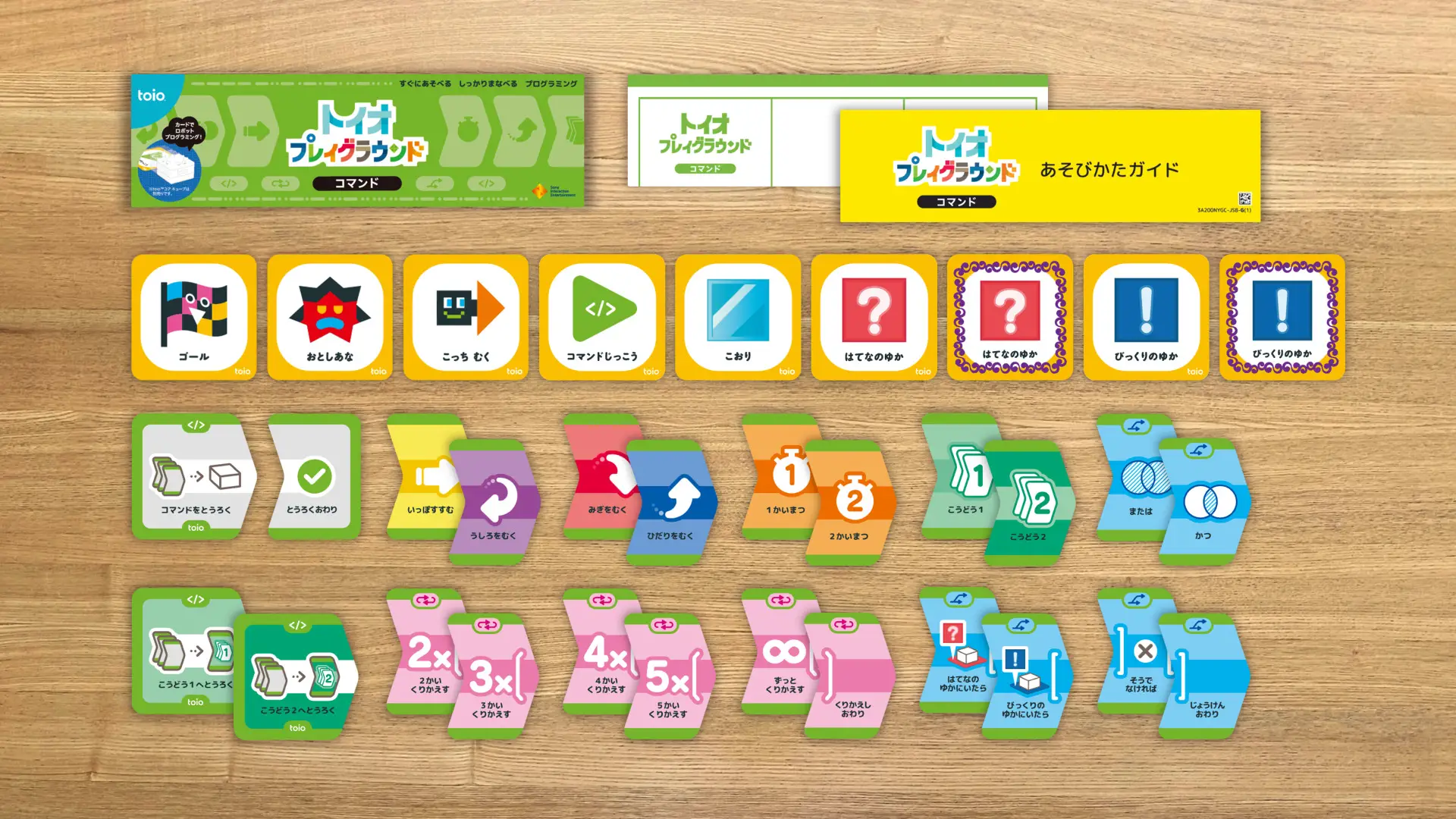 トイオ・プレイグラウンド コマンドとは、PCやタブレットを使わずにロボットを動かすことができる「トイオ・プレイグラウンド」シリーズの第3弾となる専用コンテンツです。