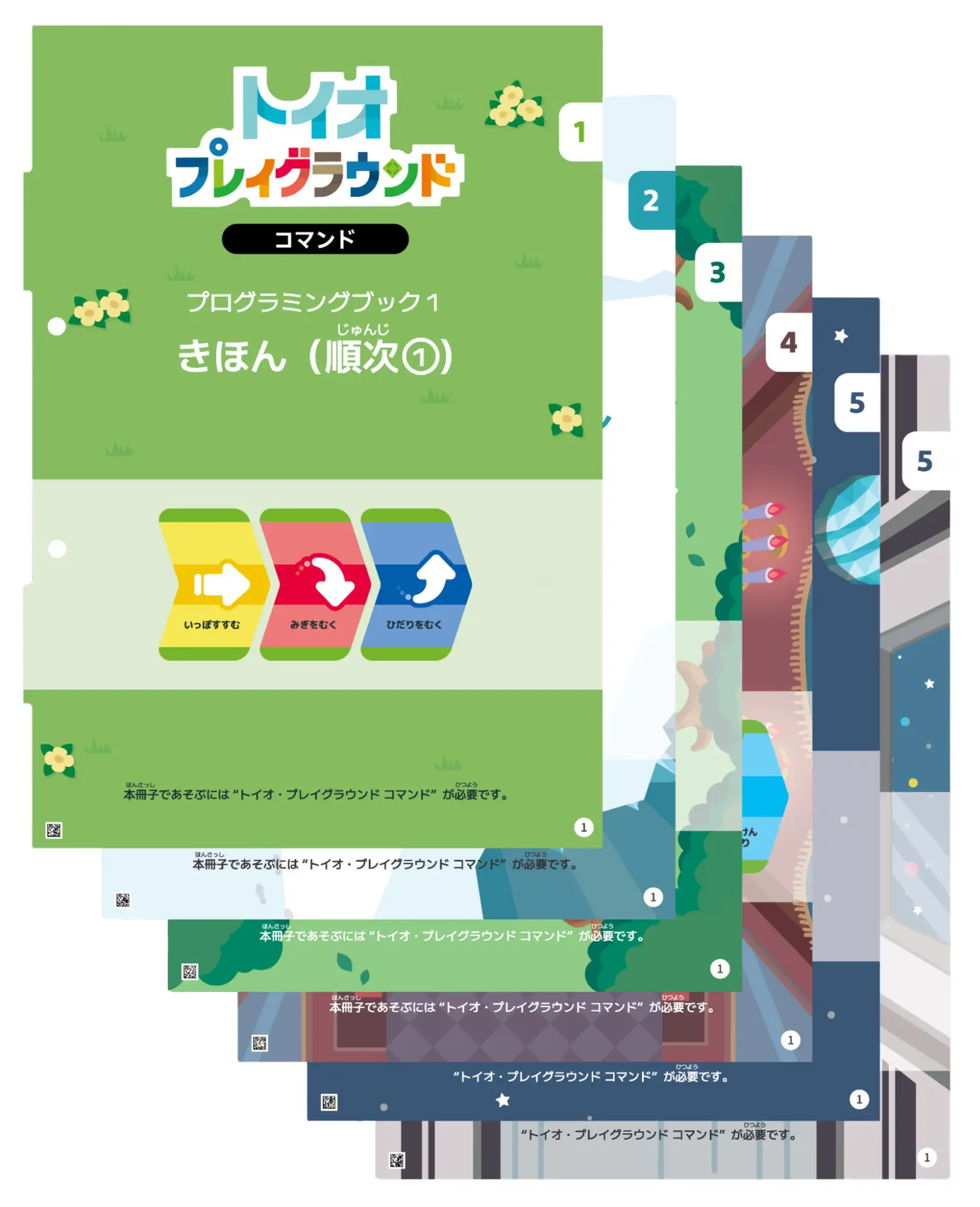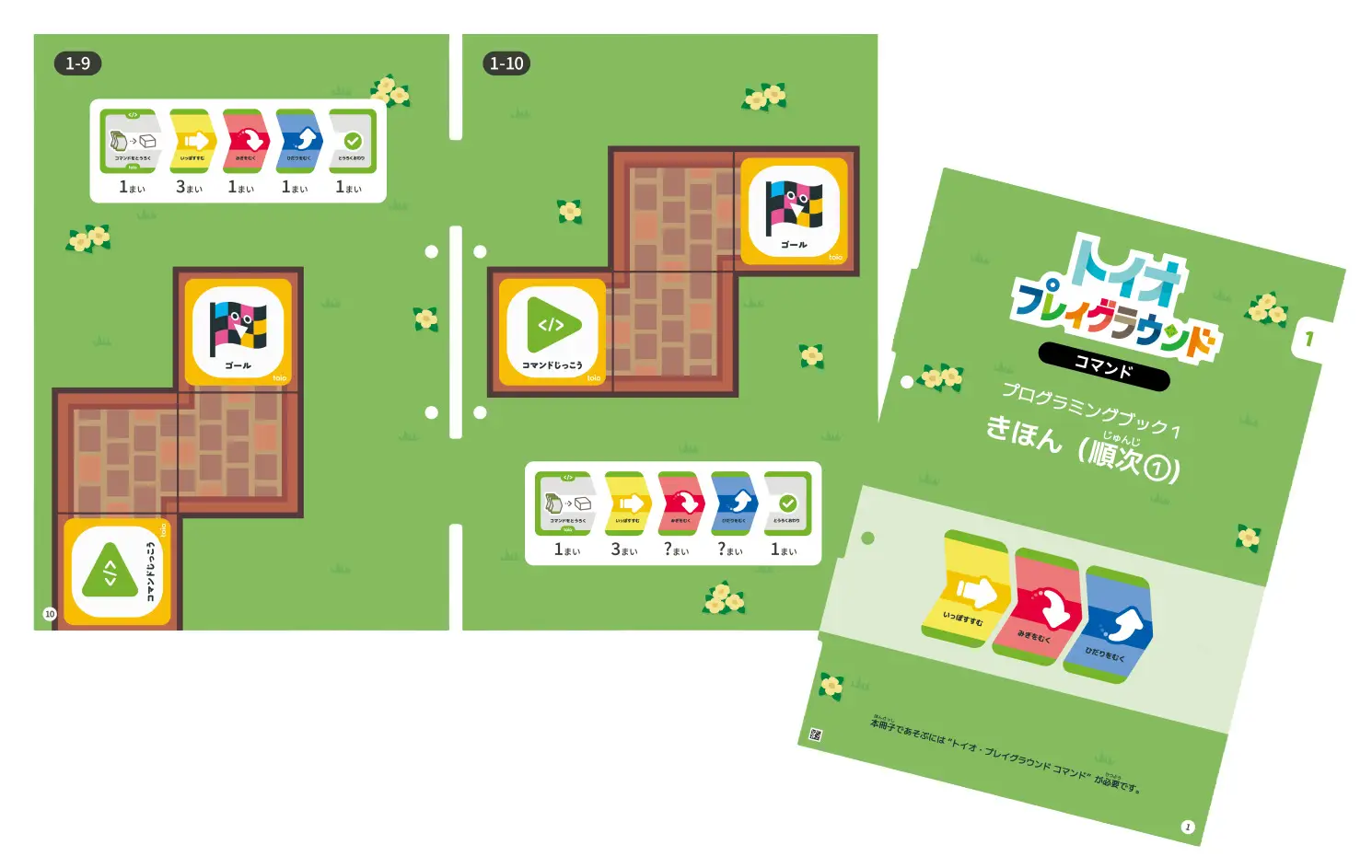 プログラミングブックとは、文部科学省のガイドライン「小学校プログラミング教育の手引(第三版)」に準拠したトイオ・プレイグラウンド コマンド専用の問題集です。
