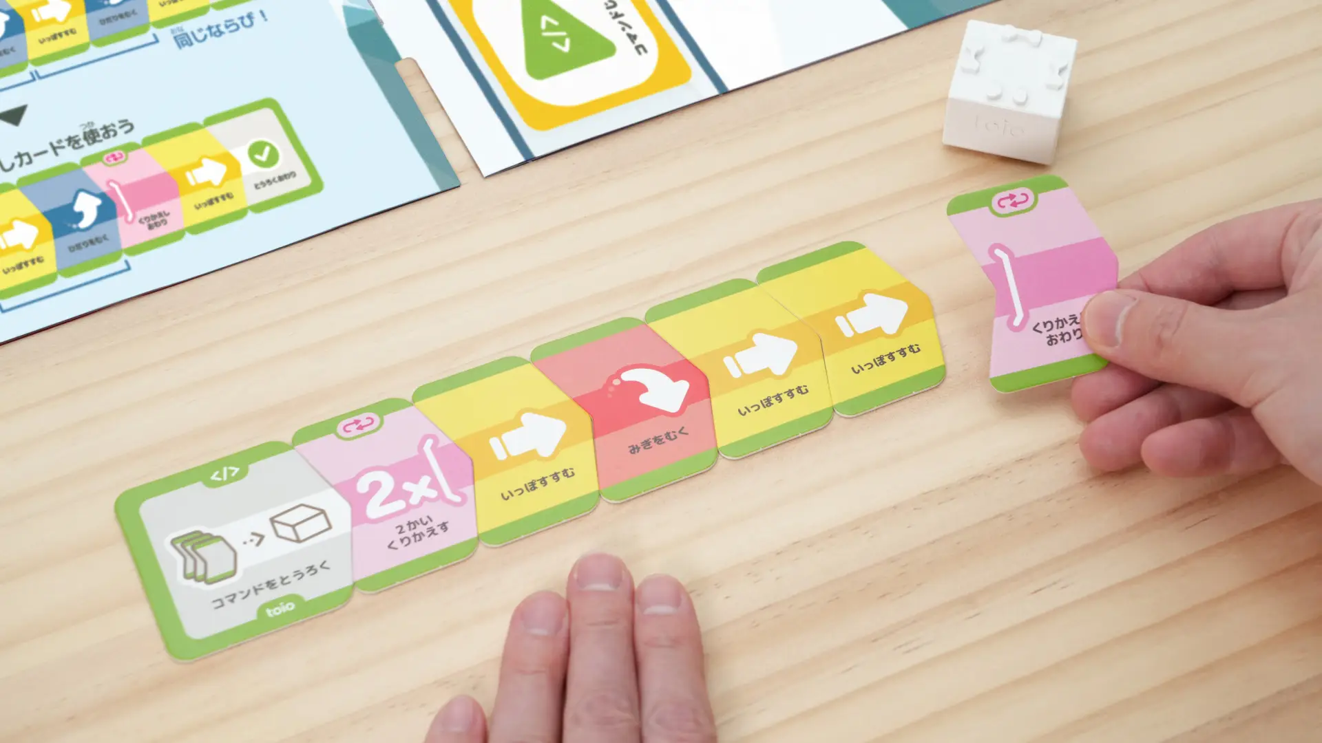 - 子どもたちが最後まで飽きることなく、高い集中力を維持して取り組めるカード型プログラミング教材である。