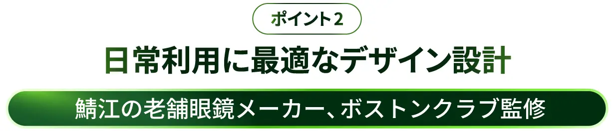 世界水準のデザイン力を有し、鯖江の老舗眼鏡メーカーのボストンクラブ監修のもと、長年培われ てきた「かけ心地」や「軽さ」、「日常へのなじみやすさ」を継承しながら、スマート眼鏡の機能性 を融合しました。スマート眼鏡であることを感じさせないデザイン設計とし、自社独自の日常に自然に馴染む、時代を超えたシルエットを実現しております。