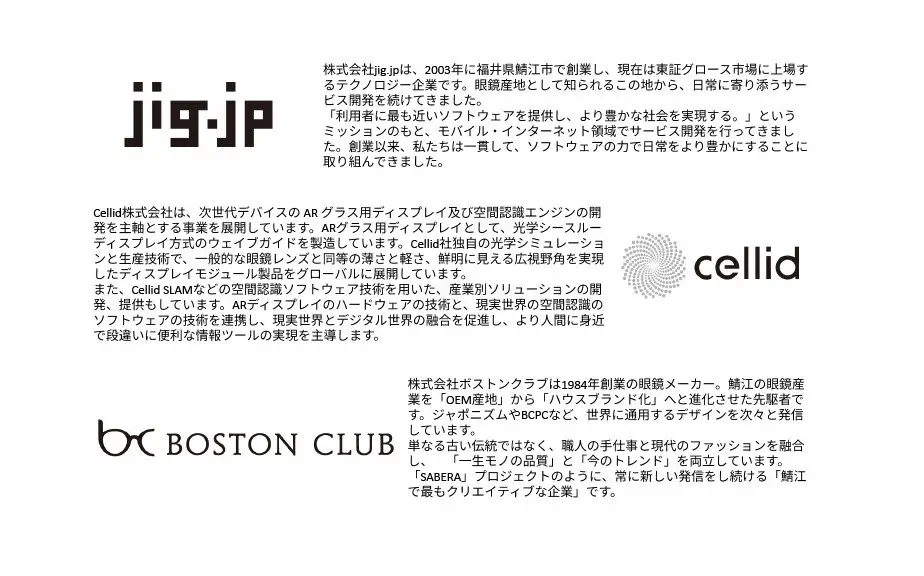 株式会社 jig.jp(本社:福井県鯖江市、東証グロース市場:5244、以下「当社」)は、当社が開発を進めるスマート眼鏡(ARグラス)事業において、ARグラスブランド「SABERA(サベラ)」に関するメディア向け新製品発表会を開催し、ブランドおよびプロトタイプの初披露を行いました。